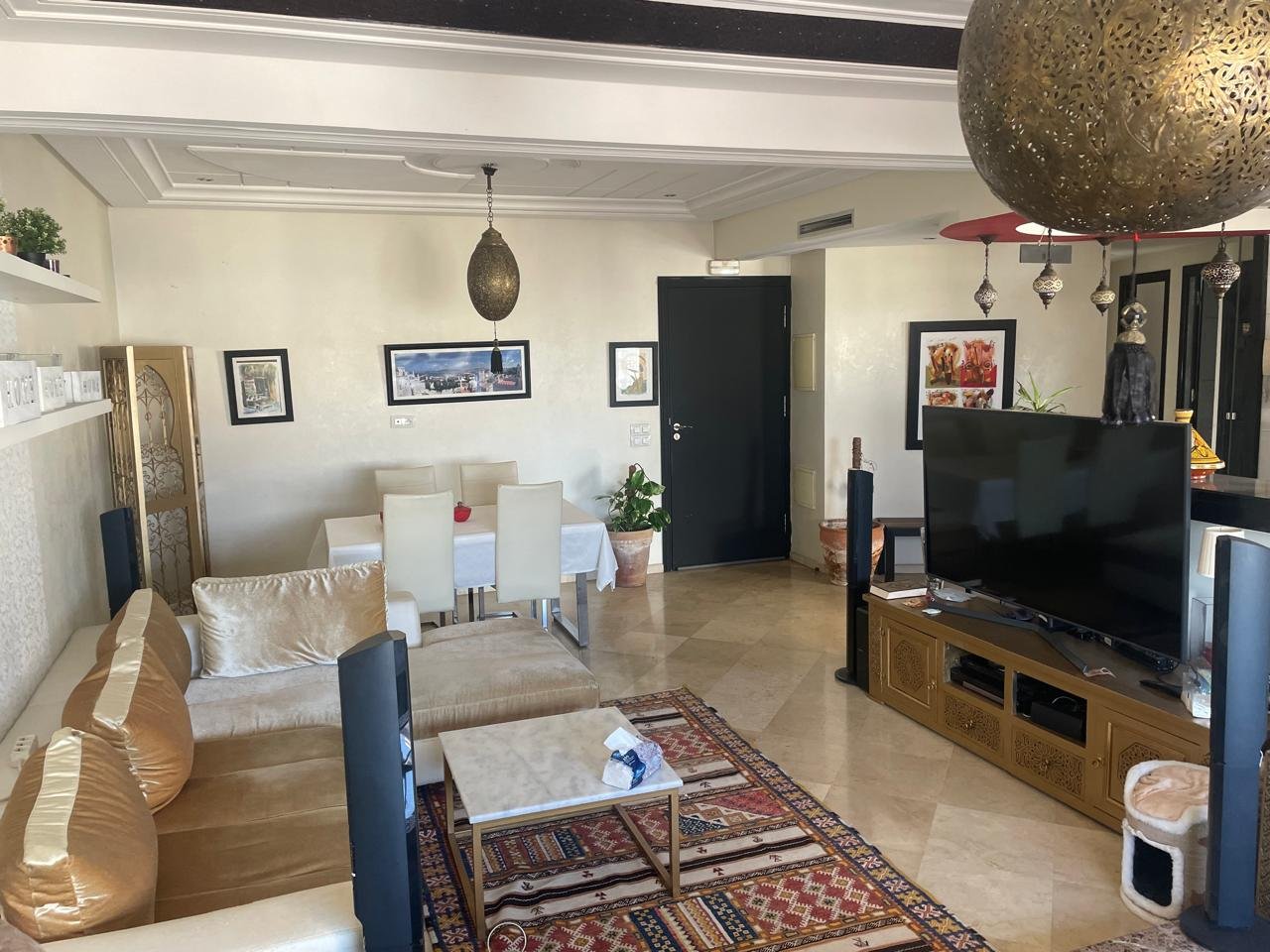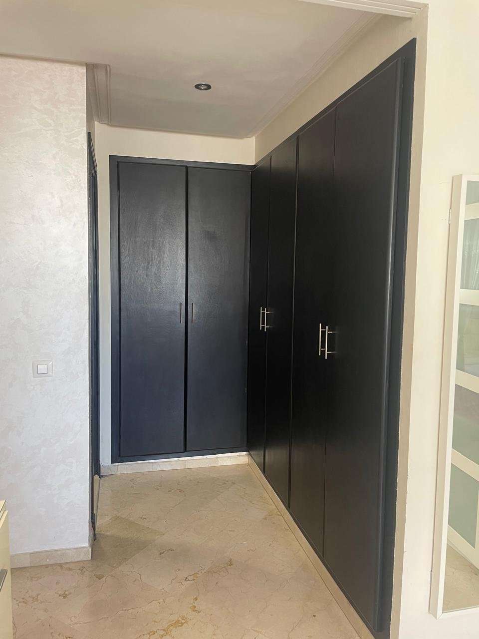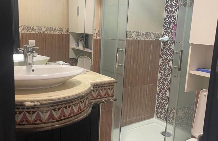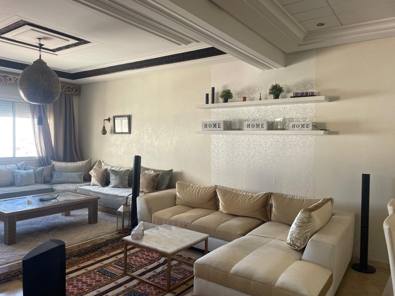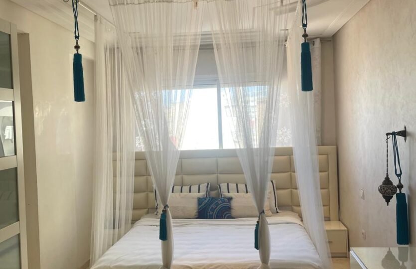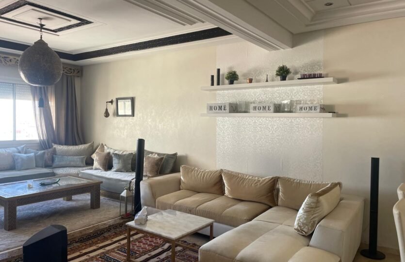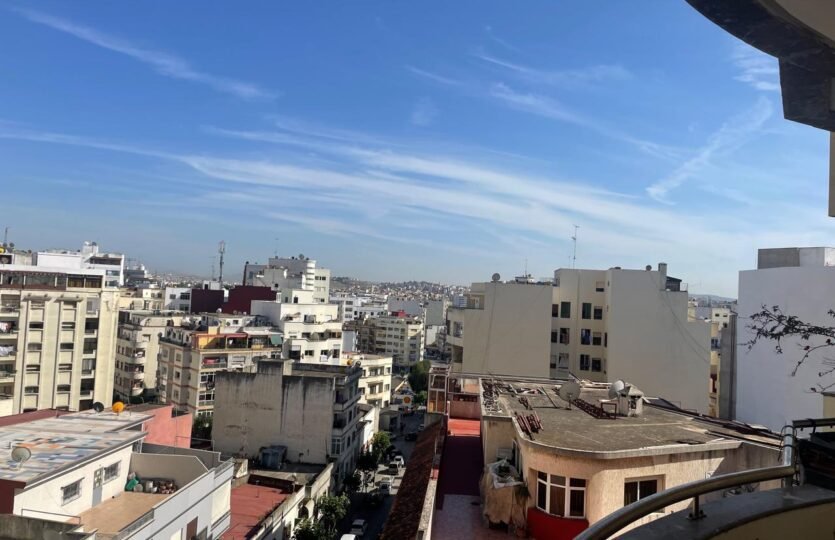 Spacieux appartement à Tanger en location long terme dans un immeuble récent, avec un très bon syndic, à 5 minutes à pied de l’école berchet, proche de tous les commerces, les banques, les écoles et le centre ville.
