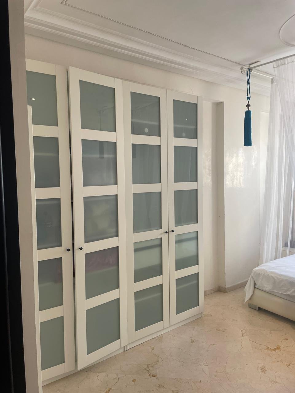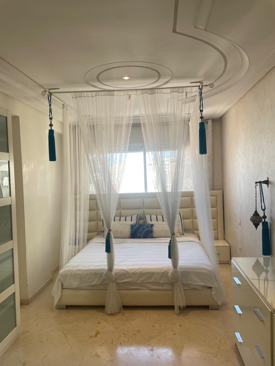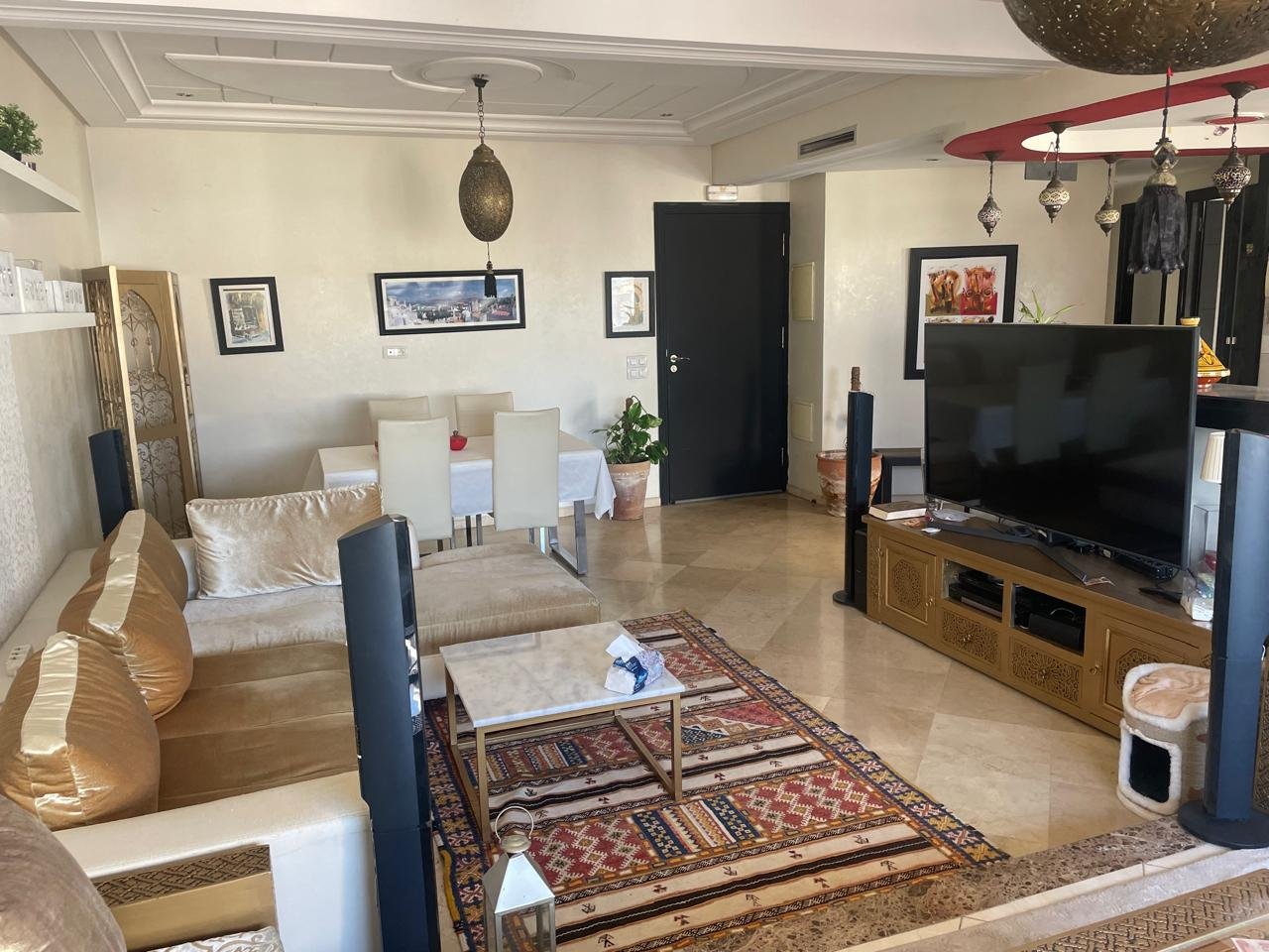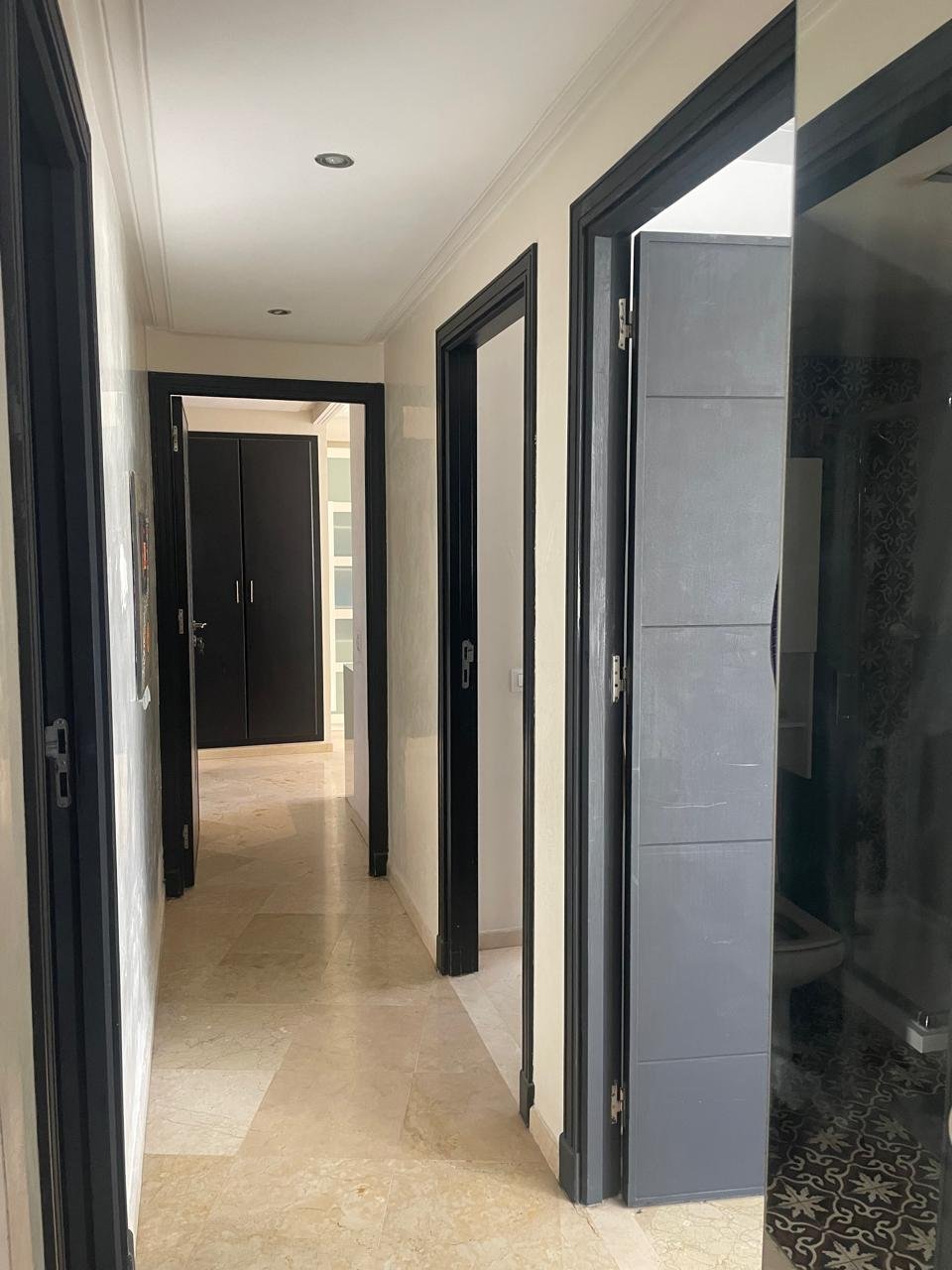 Spacieux appartement à Tanger en location long terme dans un immeuble récent, avec un très bon syndic, à 5 minutes à pied de l’école berchet, proche de tous les commerces, les banques, les écoles et le centre ville.