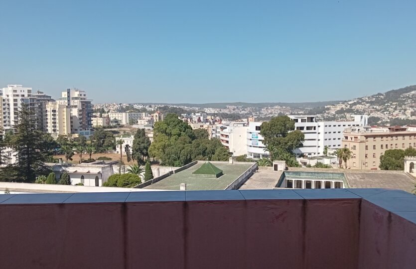 L’agence Nrea Invest vous propose ce magnifique appartement en retrait au dernier étage dans un immeuble calme situé à l’avenue Hassan II, bon syndic, ascenseur, à proximité des écoles, des commerces, centre ville et la kasbah de Tanger.
