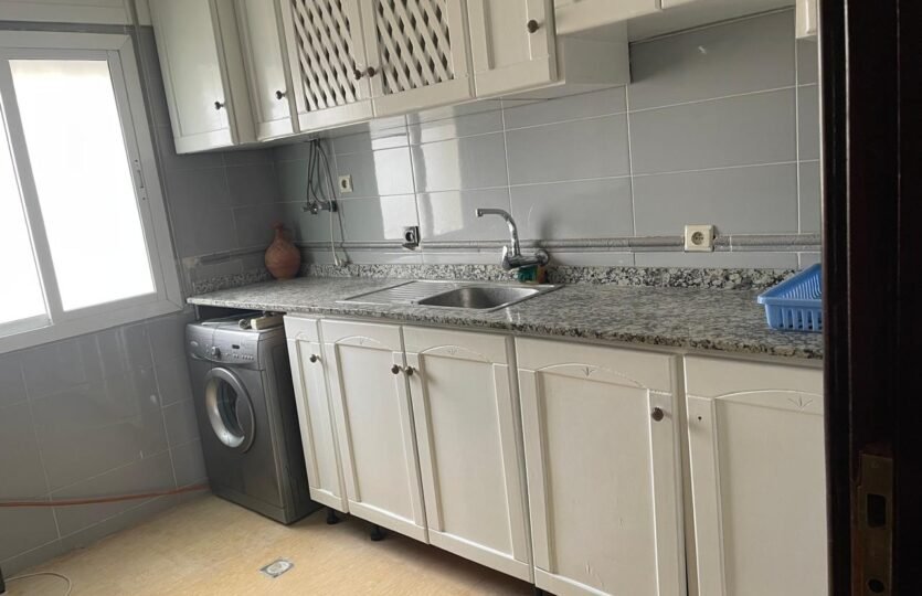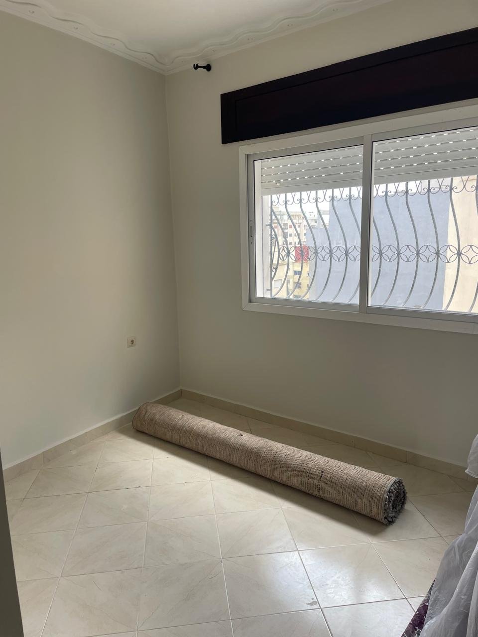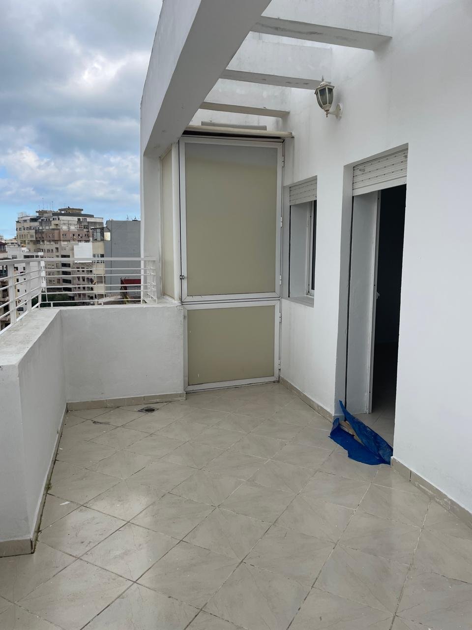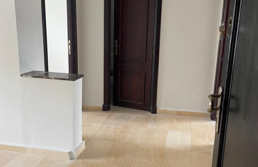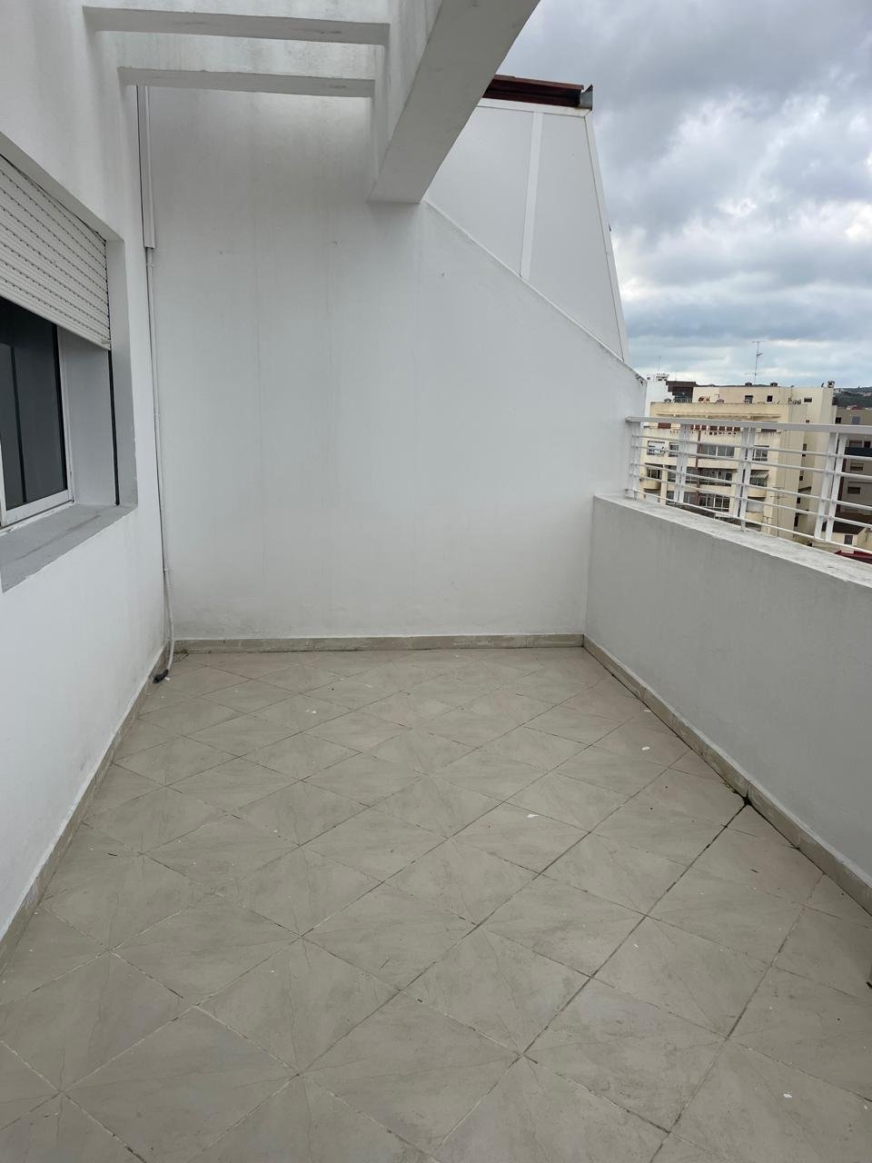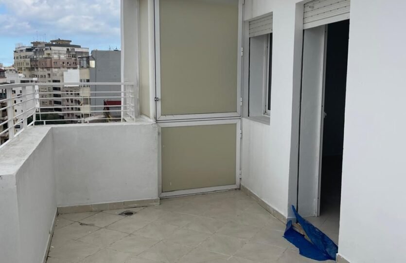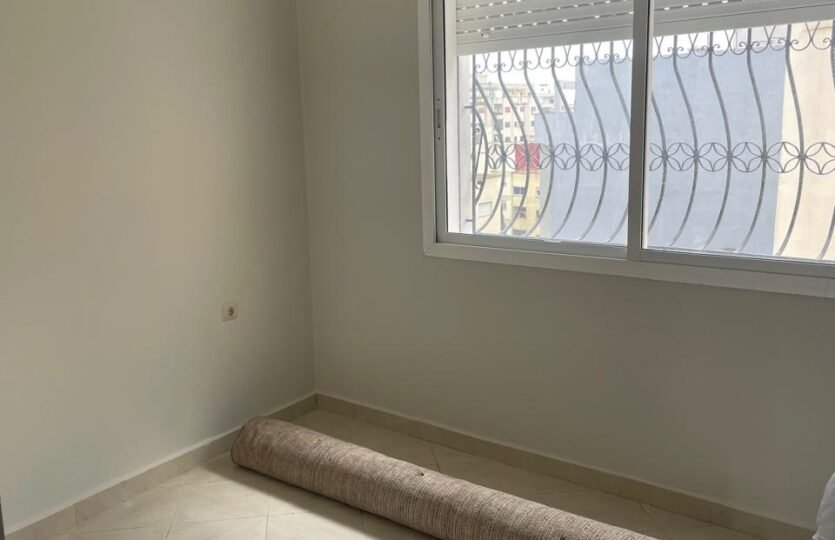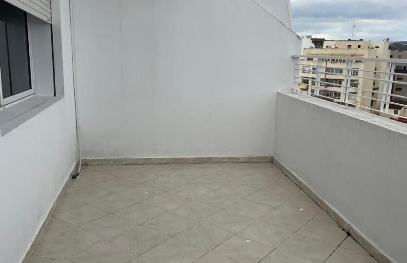 Appartement en retrait vide pour la location long terme avec terrasse, situé au quartier de Rue de Fes à Tanger, dans un immeuble avec ascenseur et concierge.