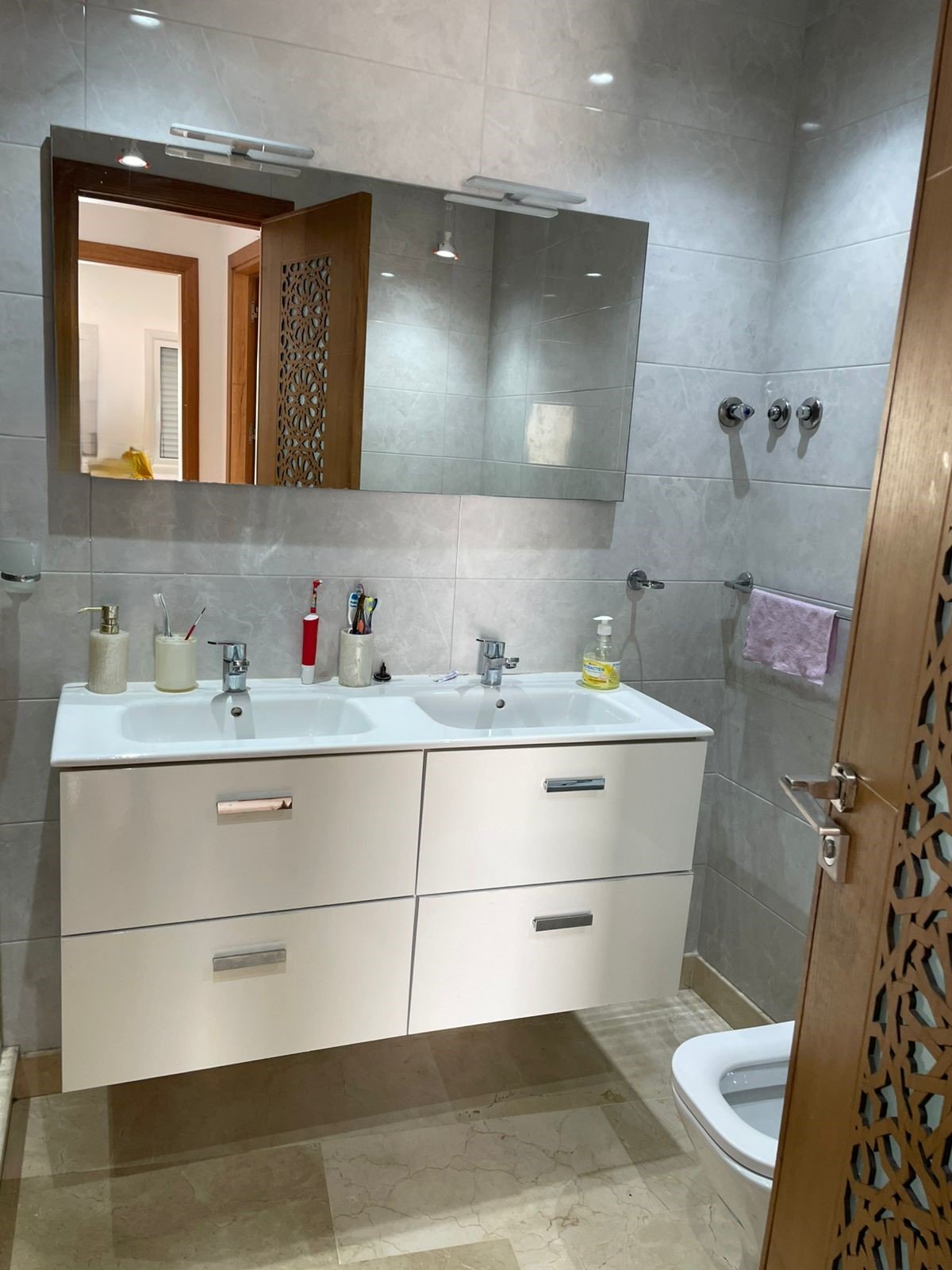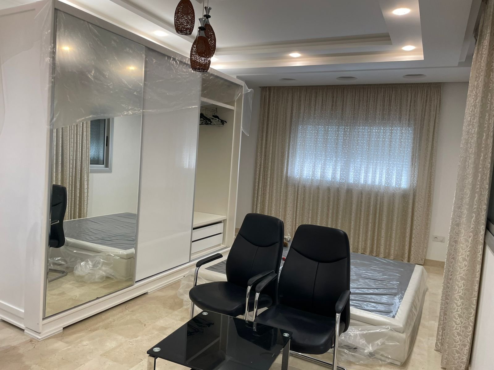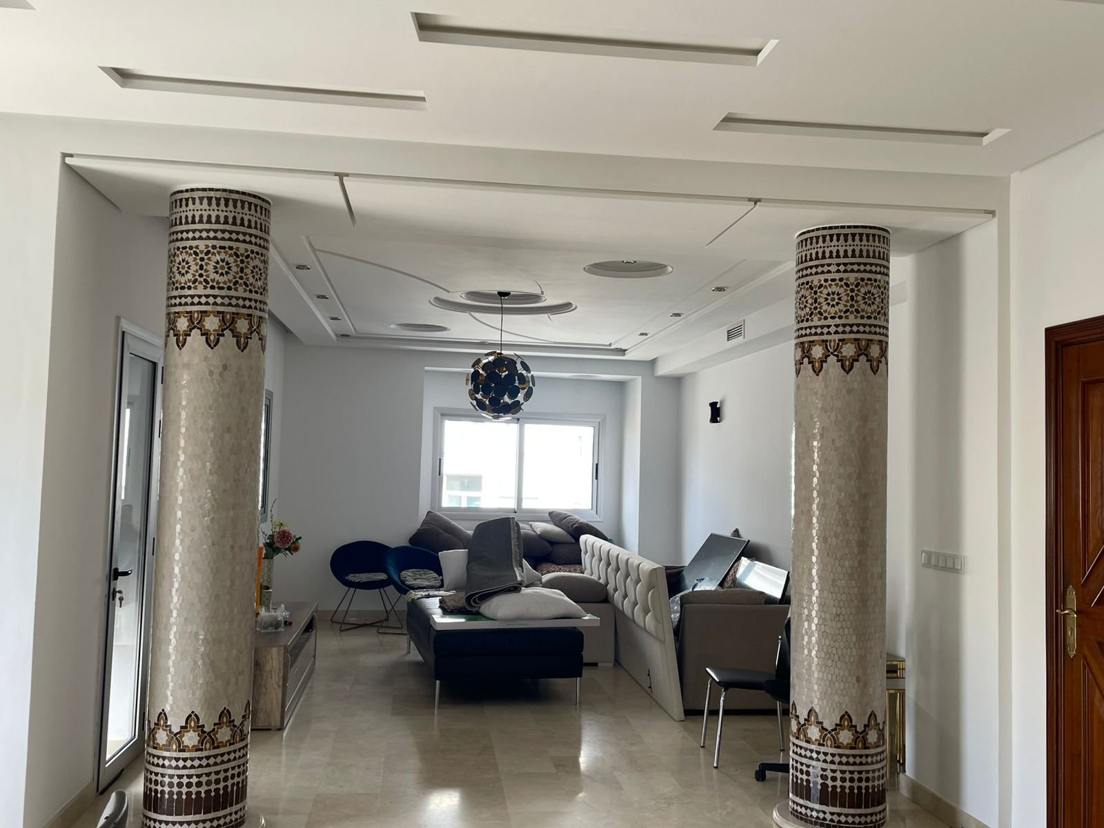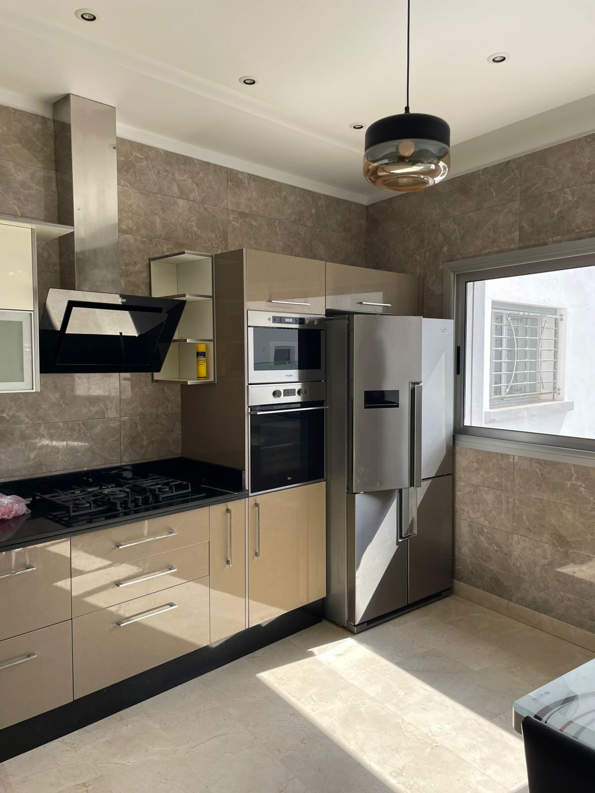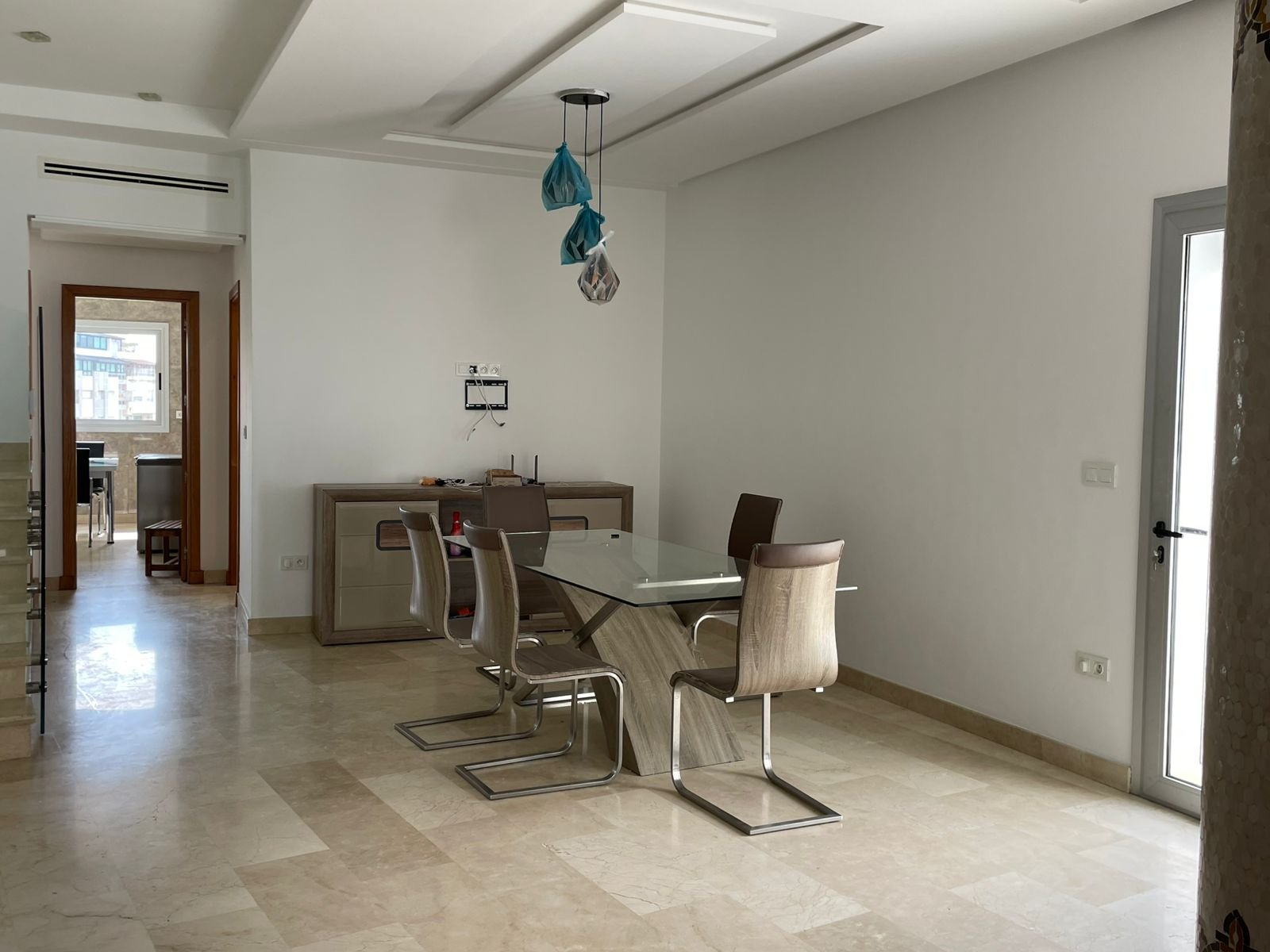 Avec une surface de 340m² plus ou moins, très bien agencé et lumineux, situé dans un immeuble récent au quartier Iberia, adresse recherché à Tanger à proximité des écoles et tous les services quotidiens, ce bien est composé de :